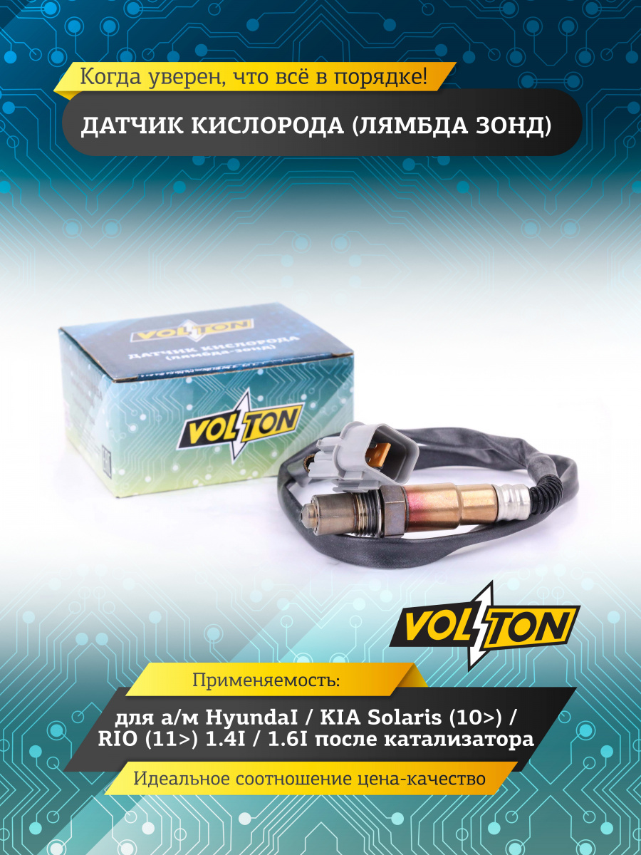 Датчик кислорода (лямбда зонд) VOLTON - проверяет количество несгоревшего кислорода в выхлопных газах автомобиля. Кислородный лямбда зонд подает электрический сигнал к ЭБУ, который оптимизирует состав топливно-воздушной смеси, подстраивая режим работы двигателя Все датчики кислорода VOLTON полностью соответствуют по посадочным размерам оригинальным изделиям. В Ассортименте представлены кислородные датчики двигателя для отечественных автомобилей, иномарок и коммерческого транспорта.
