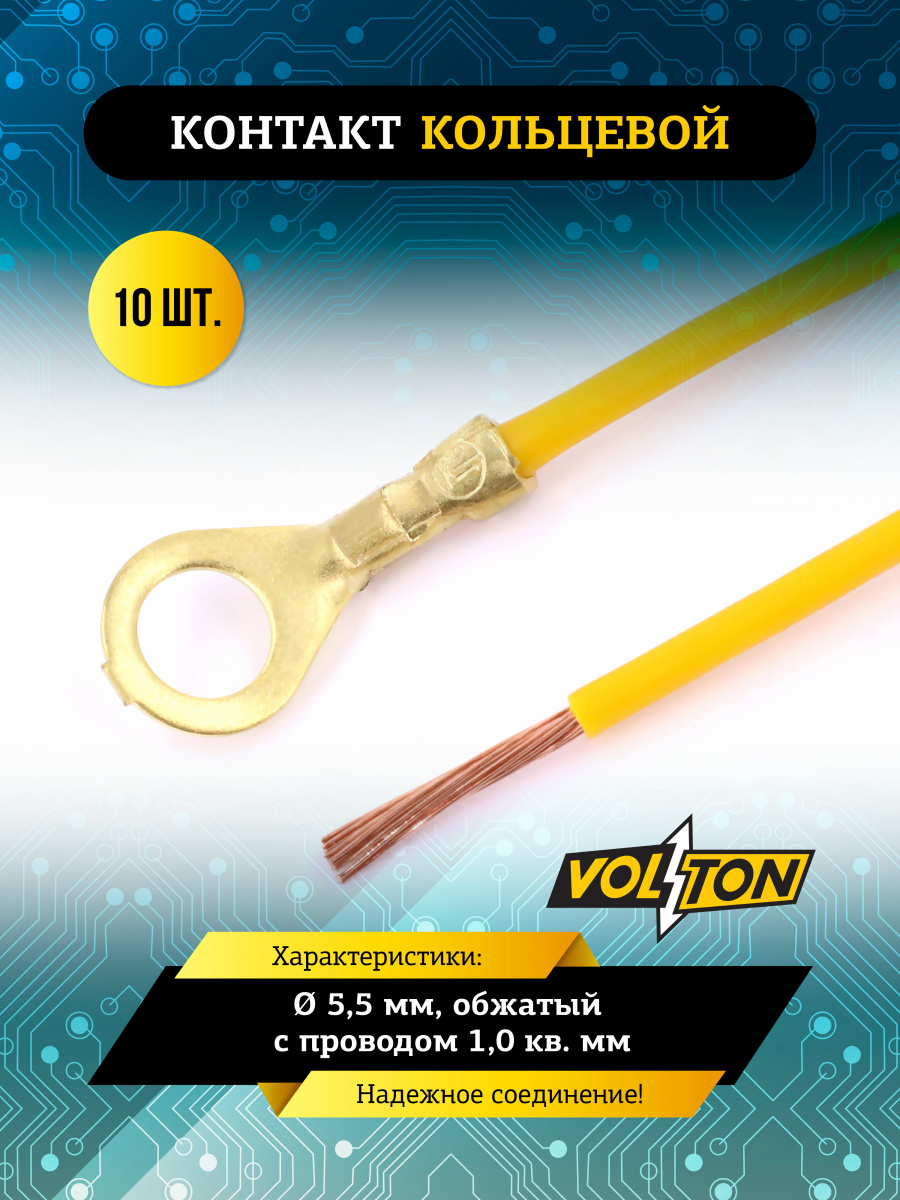 Контакт кольцевой, обжатый с проводом, от VOLTON - это универсальный элемент для электроцепей. Диаметр кольца - 5.5 мм., а сечение провода 1мм². Он обеспечивает надежность передачи сигнала и защищает от короткого замыкания. Кольцо обжато из качественных материалов, устойчивых к коррозии и гарантирует долговечность изделия.