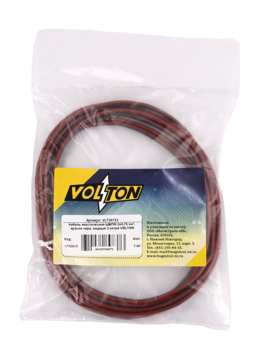 Кабель акустический ШВПМ 2х0,75 мм², красно-черн. медный 3 метра VOLTON