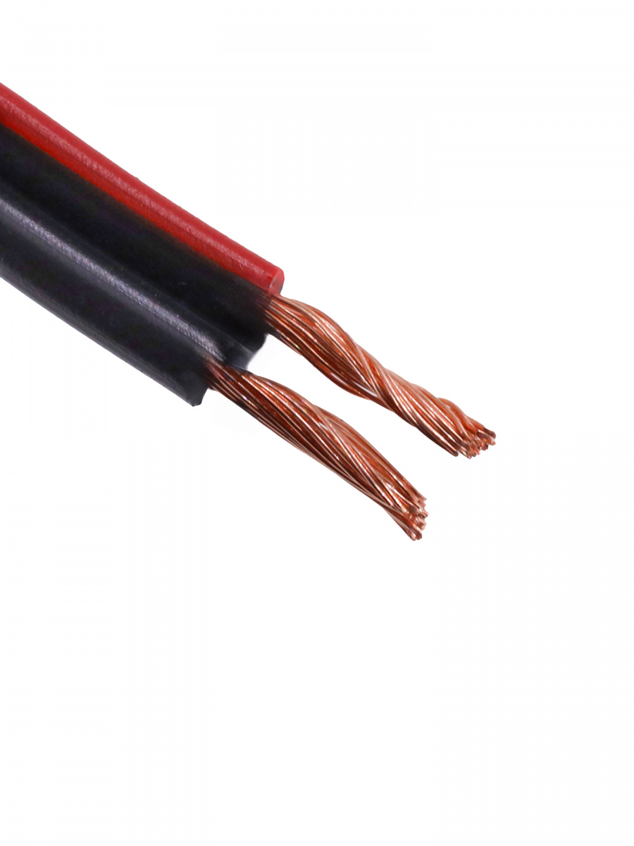 Акустический кабель с медными жилами, красно-чёрного цвета. Используется для подключения звуковых систем и передачи аудиосигнала. Состоит из двух многожильных проводников, расположенных параллельно друг другу. Проводники изолированы ПВХ-изоляцией красного и чёрного цвета, которая защищает от внешних помех и механических повреждений.
