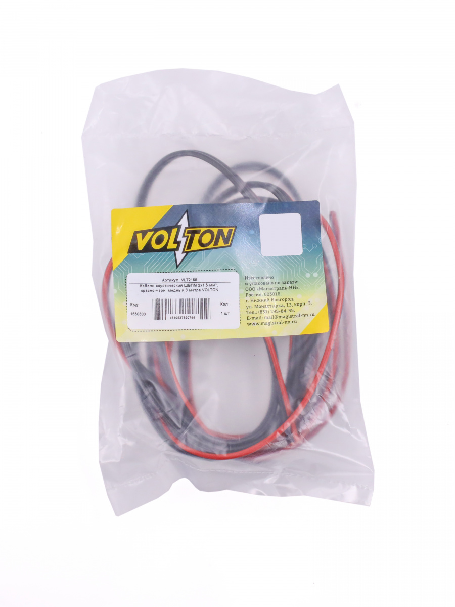 Кабель акустический ШВПМ 2х1,5 мм², красно-черн. медный 3 метра VOLTON