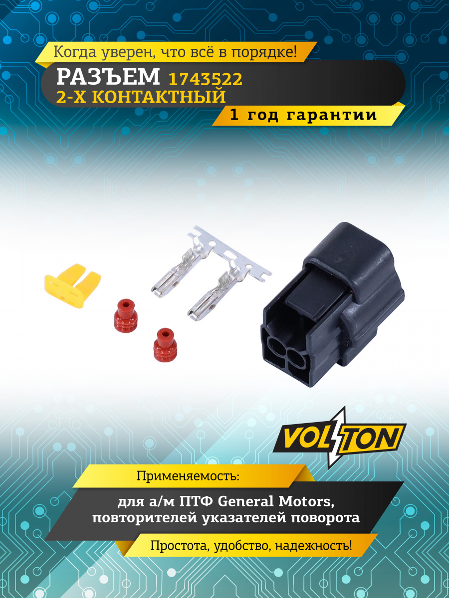 Разъем 1743522 2-х конт. повторителей указателей поворота, ПТФ General Motors,VOLTON