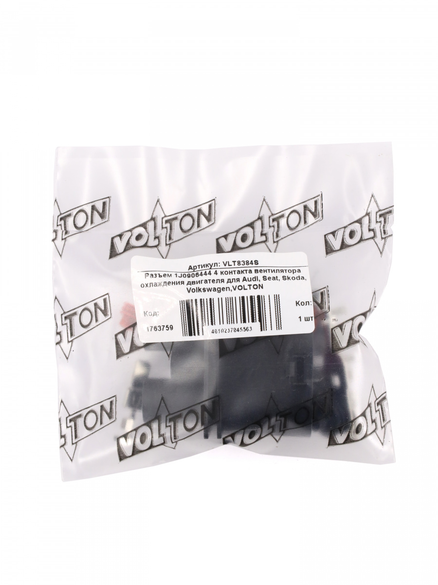 Разъем 1J0906444 (4pin) 4 контакта: Тип разъема: Герметичный Тип контакта: Штыревой (Male)Ответная часть разъема - VLT6504SК вентилятору радиатора охлаждения двигателя OEM: 1K0959455BCПрименяемость:AudiA1, A3, TT,SeatAltea, Ibiza, Leon, Toledo,SkodaFabia, Octavia, Superb, Yeti,VolkswagenCaddy, Eos, Golf, Jetta, Passat, Polo, Scirocco, Touran.