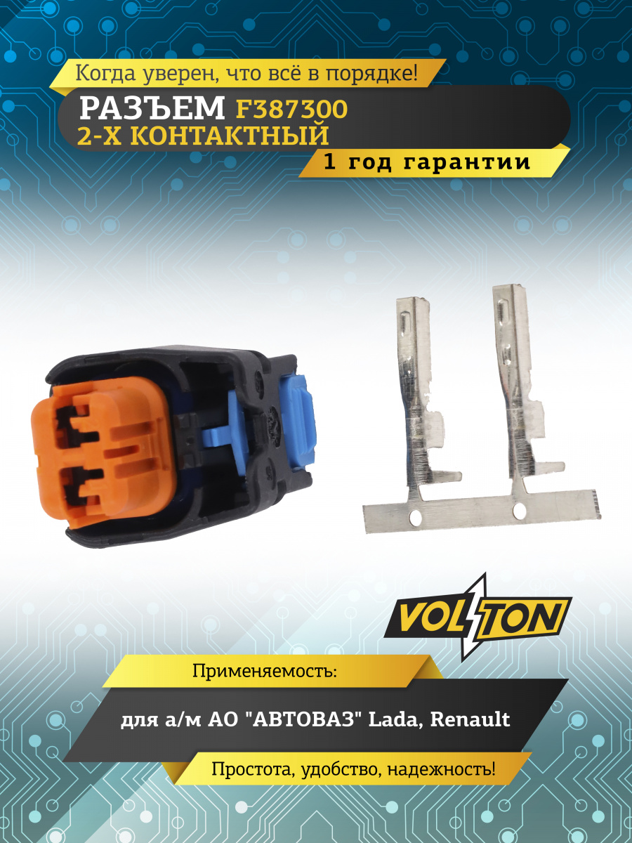 Разъем F387300 2 контакта клапана адсорбера для Lada (ВАЗ), Renault,VOLTON