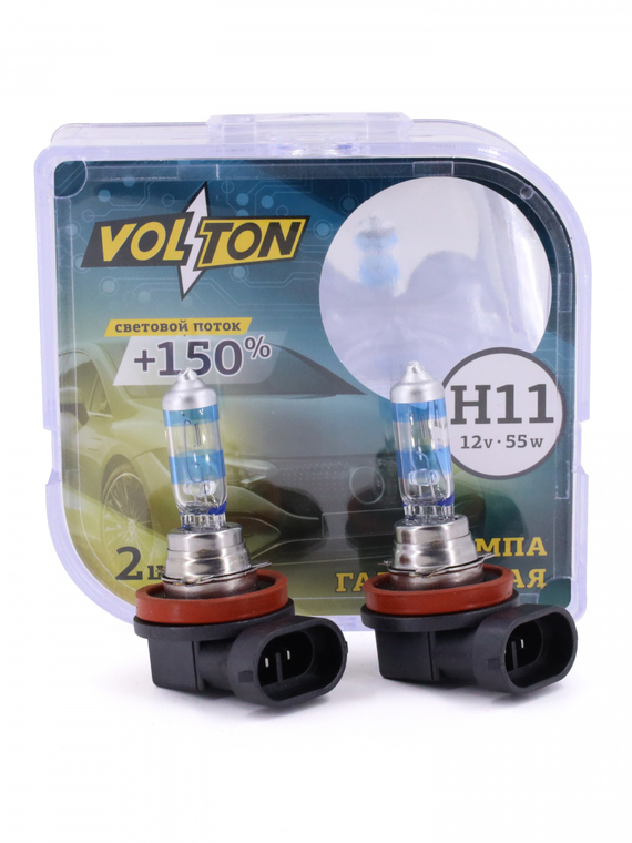Лампа галогенная H11 12В 55 Вт PGJ19-2 +150% (комплект 2шт.) "VOLTON"