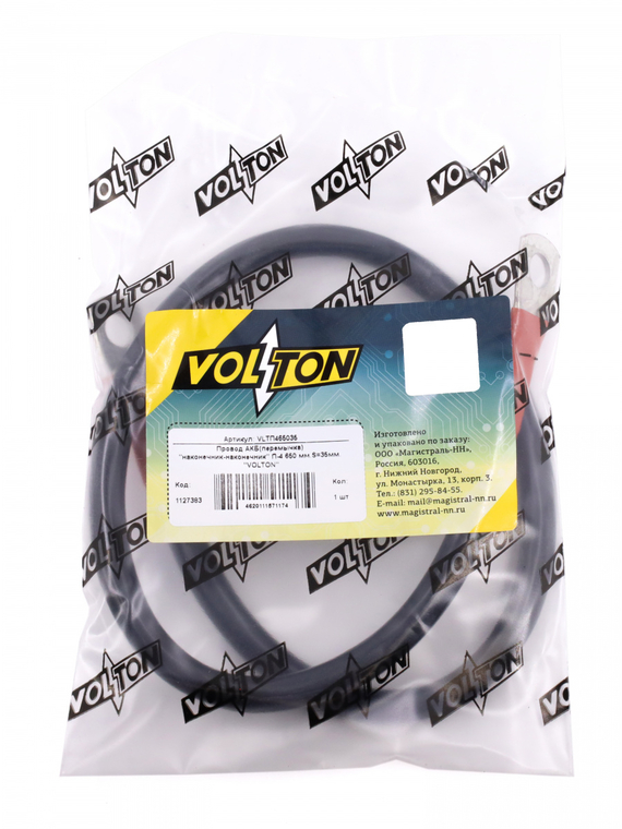Провод АКБ(перемычка) "наконечник-наконечник" П-4 650 мм.S=35мм. "VOLTON"