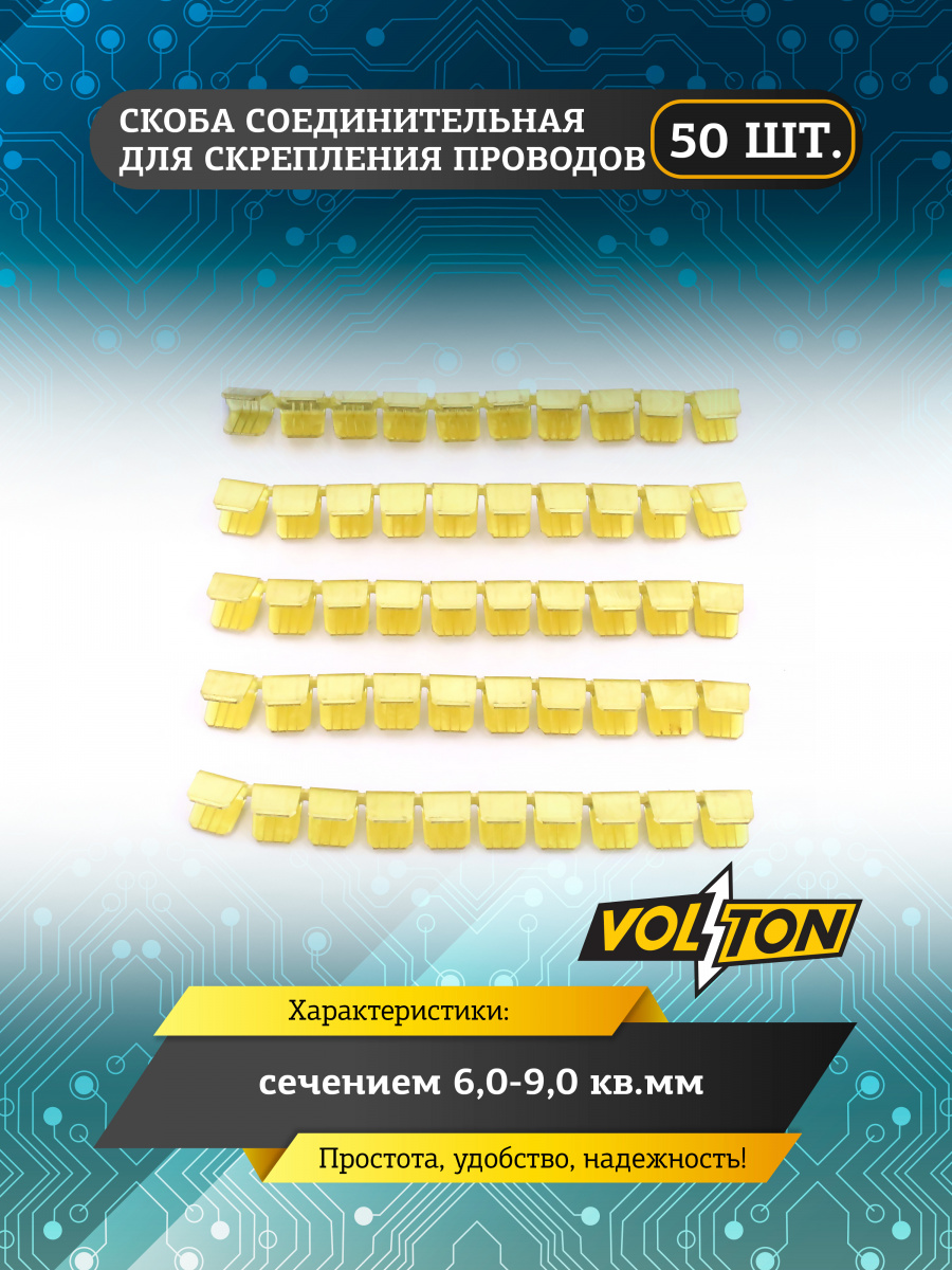 Скоба соединительная для проводов сечением 6-9 мм² VOLTON - это изделие, предназначенное для соединения двух или более проводов. Используется в электромонтажных работах.